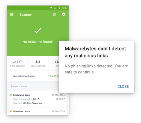 장치가 감염되지 않도록 실시간 보호합니다. 모바일에 대한 멀웨어 위협이 증가하고 있지만 Malwarebytes 첨단 기술은 랜섬웨어 같은 새로운 위협이 문제가 되기 전에 처리합니다.