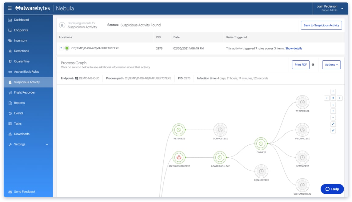 - 정확한 판정 : Malwarebytes의 혁신적인 머신 러닝과 AI, 특허 받은 굿웨어 모델은 오탐을 제거하고 신뢰할 수 있는 결론을 내리는데 도움이 됩니다.