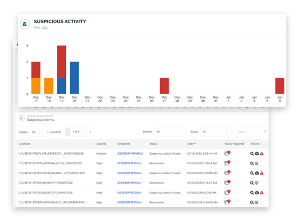 이상 탐지와 의심스러운 활동 모니터링과 같은 강력한 클라우드 기반의 기능을 통해 Malwarebytes Nebula는 팀이 새로운 사이버 위협을 신속하게 탐지하고 제거할 수 있게 지원합니다.