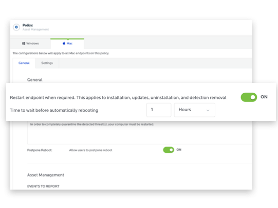 - 포괄적인 정책 : 재부팅(reboot), 스캔, 보호, 소프트웨어 업데이트 등