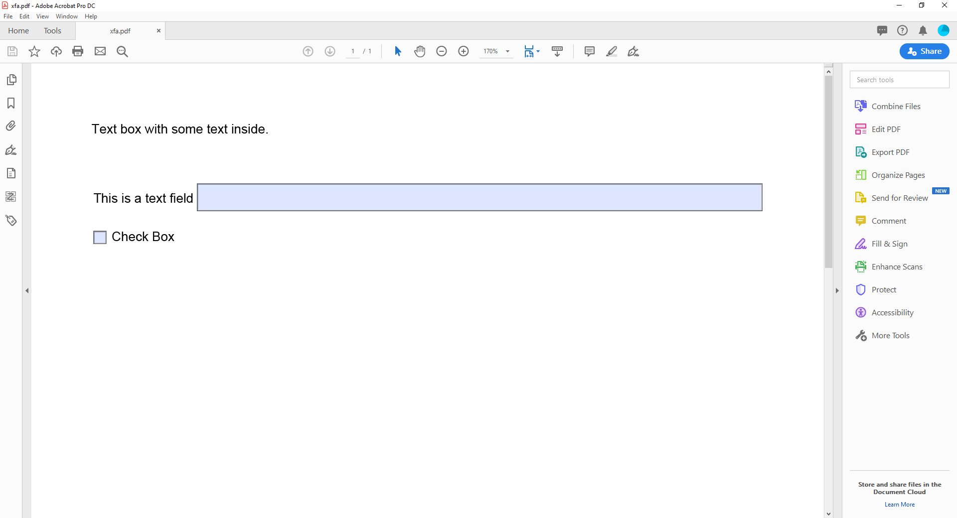 아래 코드는 XFA 형식인 xfaform.pdf를 입력으로 사용하여 시각적으로 동일한 플랫(Flat) PDF인 flat.pdf를 생성합니다. 데모 랩(Demo Lab)에서 직접 테스트 할 수도 있습니다.