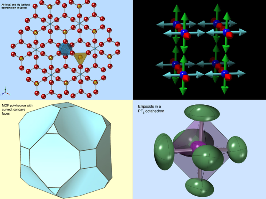 왼쪽 상단 : 동일한 결정의 서로 다른 원자에 서로 다른 다면체 스타일을 적용합니다.