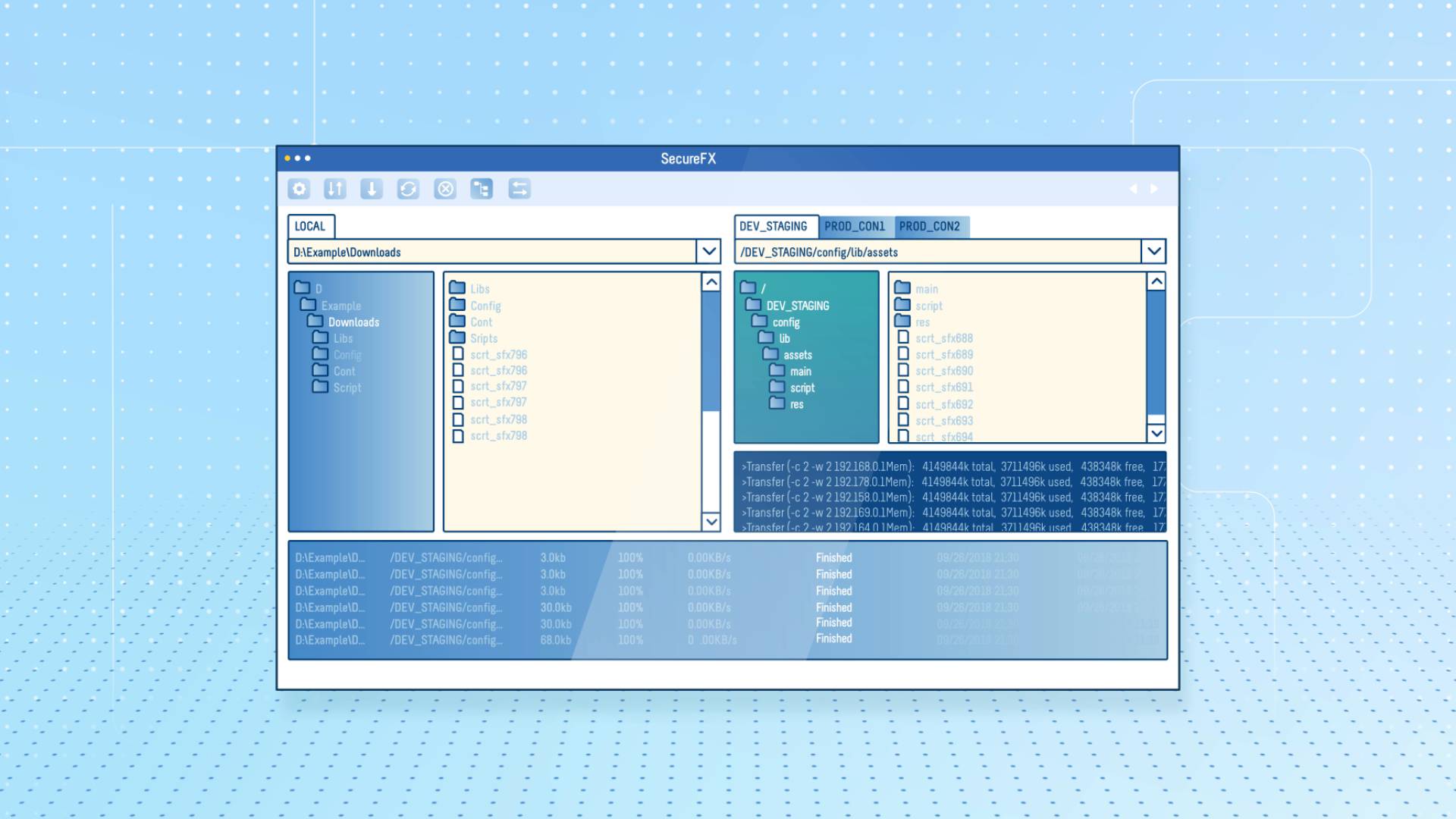 SecureFX는 중단 된 전송을 완료하고 다중 파일 전송을 자동으로 다시 시작합니다.